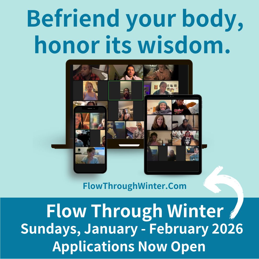 Week1: In Flow Through Winter, you focus on befriending the body through gentle movement and self-compassion. By cultivating a deeper connection with your physical self, you enhance your overall well-being and embrace the changes that winter brings.